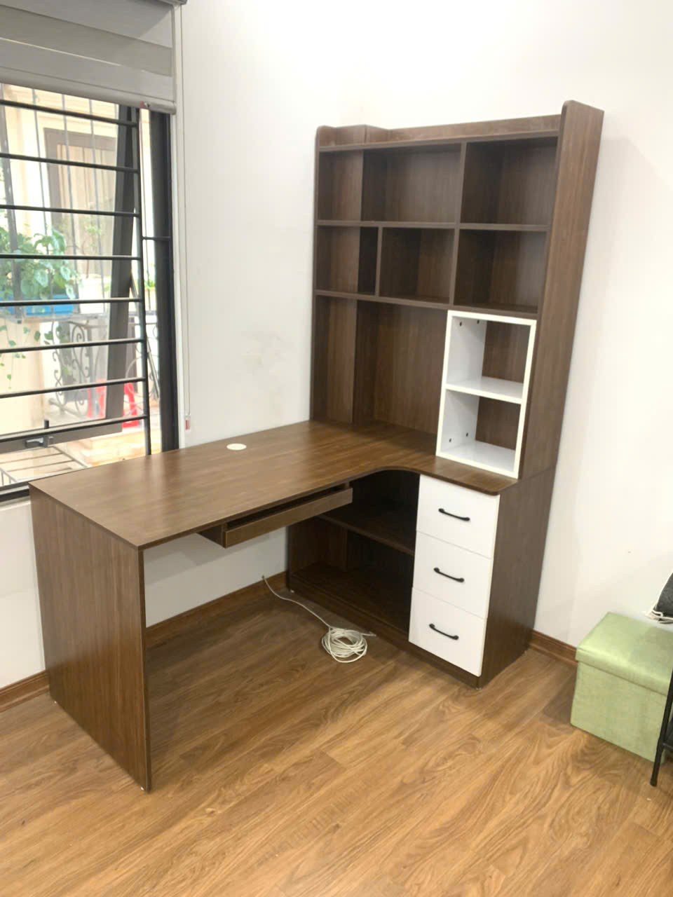 Mặt bàn được chia thành khu vực làm việc và khu đặt máy tính để bàn. Giá sách được chia thành nhiều tầng và nhiều ngăn nhỏ cho phép người dùng được sử dụng linh hoạt theo mục đích cá nhân. Ngoài ra, bạn còn có thêm cả tủ để đồ bên dưới để cất giữ tài liệu trong quá trình sử dụng.