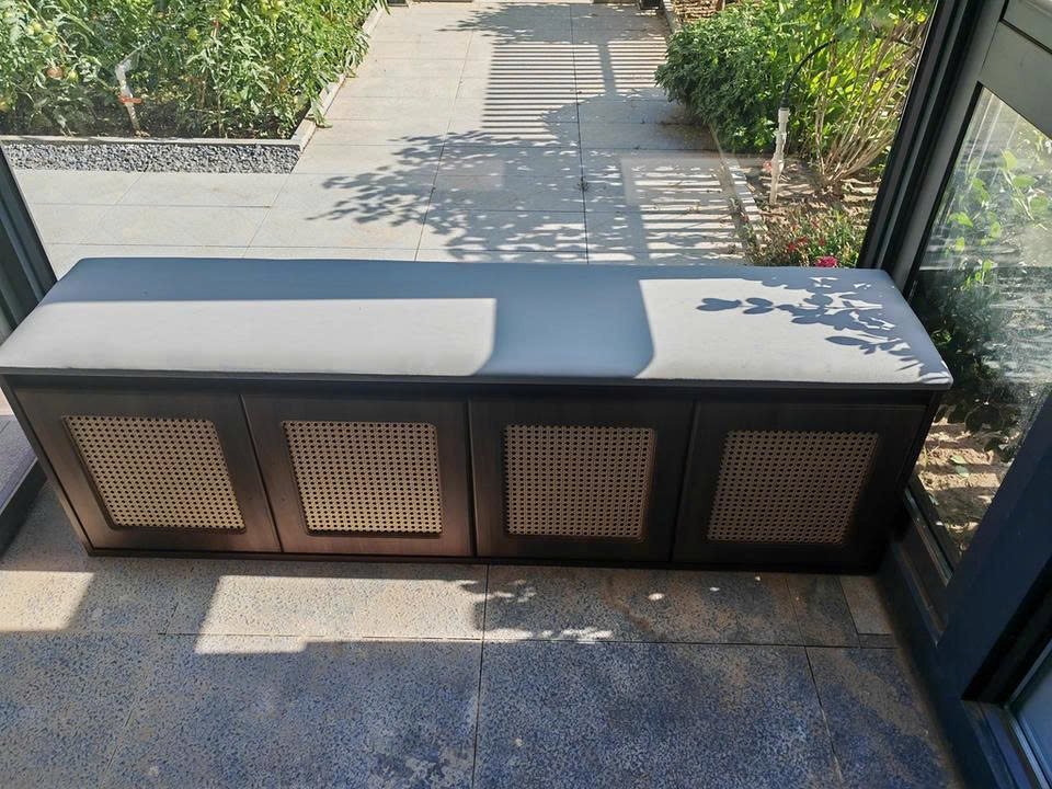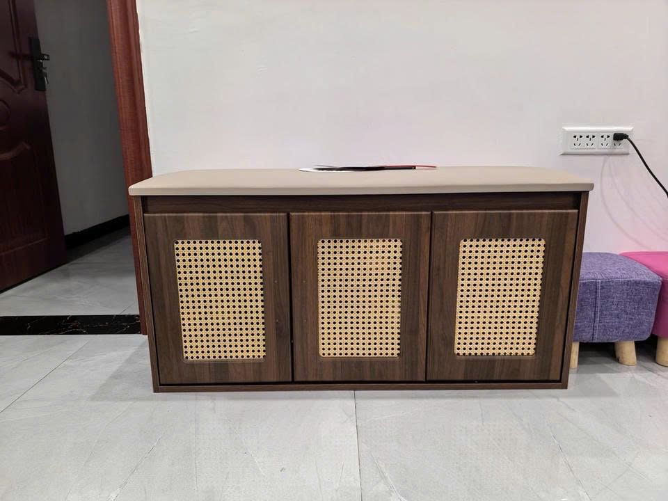 Ghế băng đựng giày gỗ màu óc chó GHS-5297 là lựa chọn lý tưởng để tối ưu không gian lưu trữ và tạo điểm nhấn sang trọng cho ngôi nhà. Với chất liệu gỗ MDF cốt chống ẩm phủ Melamine, cánh nan mây và đệm bọc (hoặc bọc da theo yêu cầu), sản phẩm không chỉ bền đẹp mà còn mang lại sự tiện lợi và thoải mái khi sử dụng.