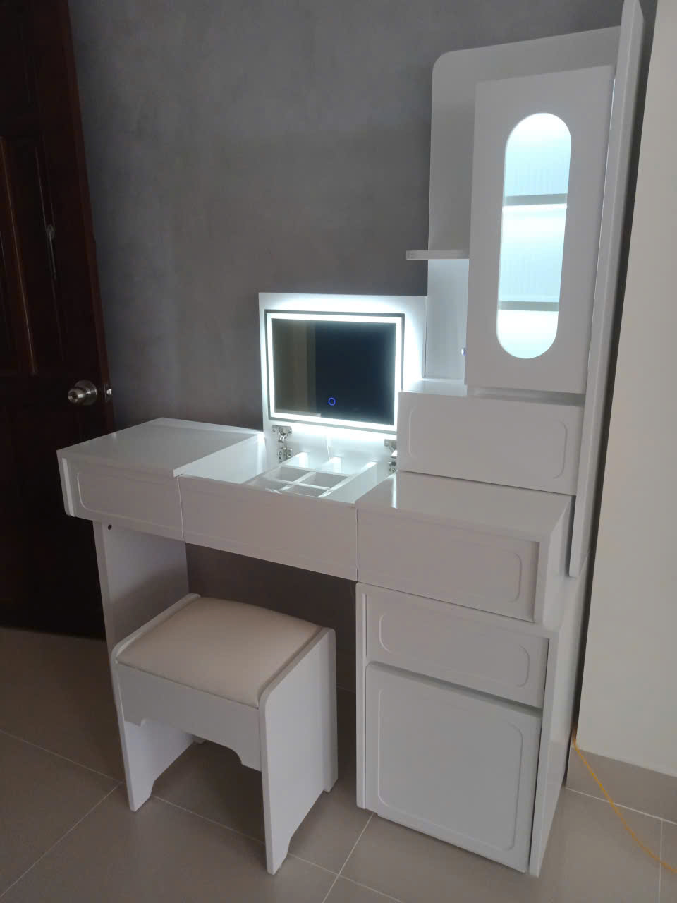 Bàn trang điểm tích hợp tủ đứng lưu trữ đa năng
