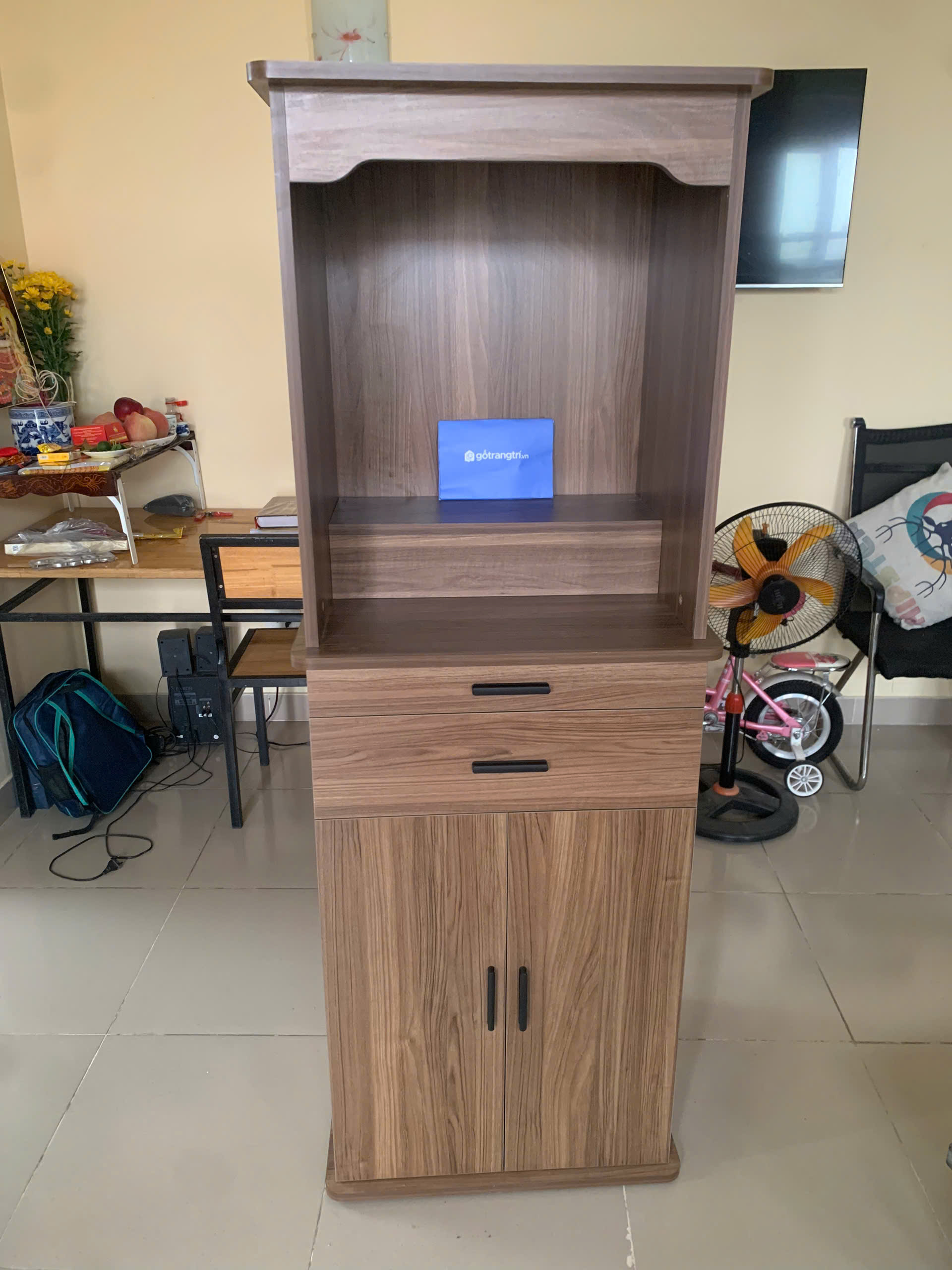 Sản phẩm này được trang bị 2 ngăn kéo đựng đồ nhỏ và một hộc tủ to ở phần dưới. Những chiếc ngăn tủ này giúp bạn lưu trữ các vật dụng thờ cúng một cách dễ dàng và tiện lợi.