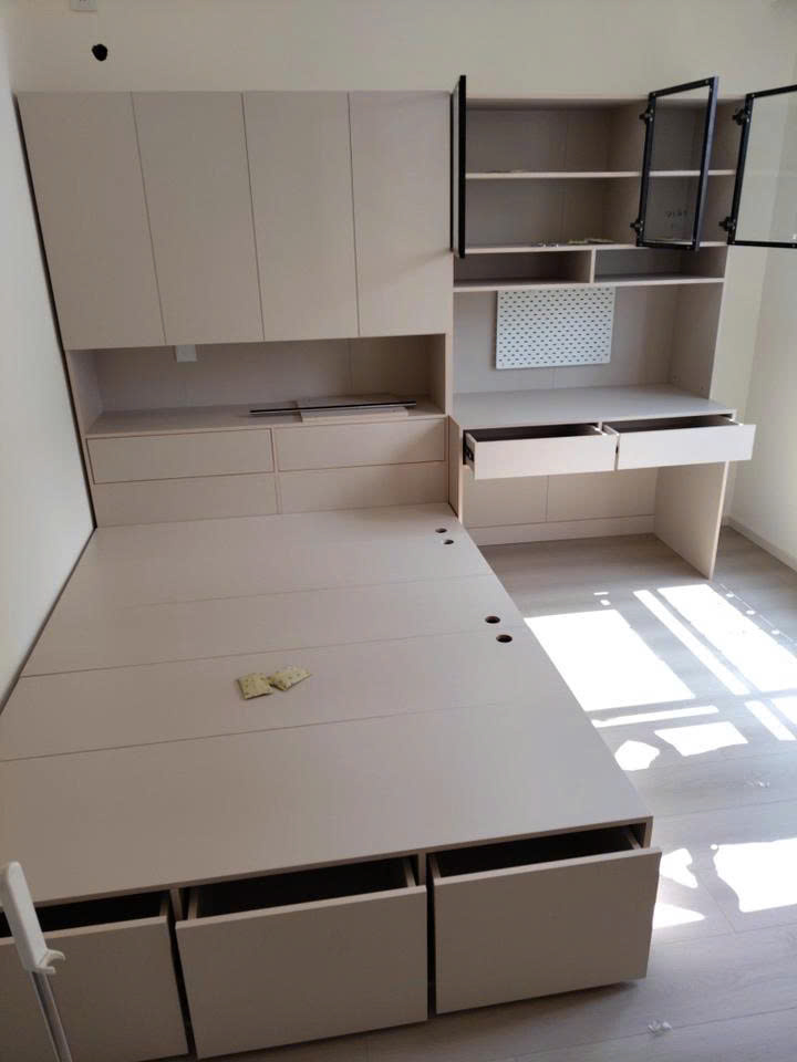 Combo nội thất liền khối giúp phòng gọn gàng, nhìn rất sang.