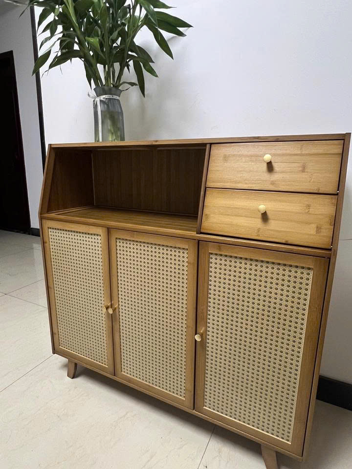 Mẫu tủ này rất sang trọng và tiện dụng. Cánh tủ nan mây mang đến sự tinh tế, đồng thời giúp không gian sống của tôi thêm phần thoáng đãng.