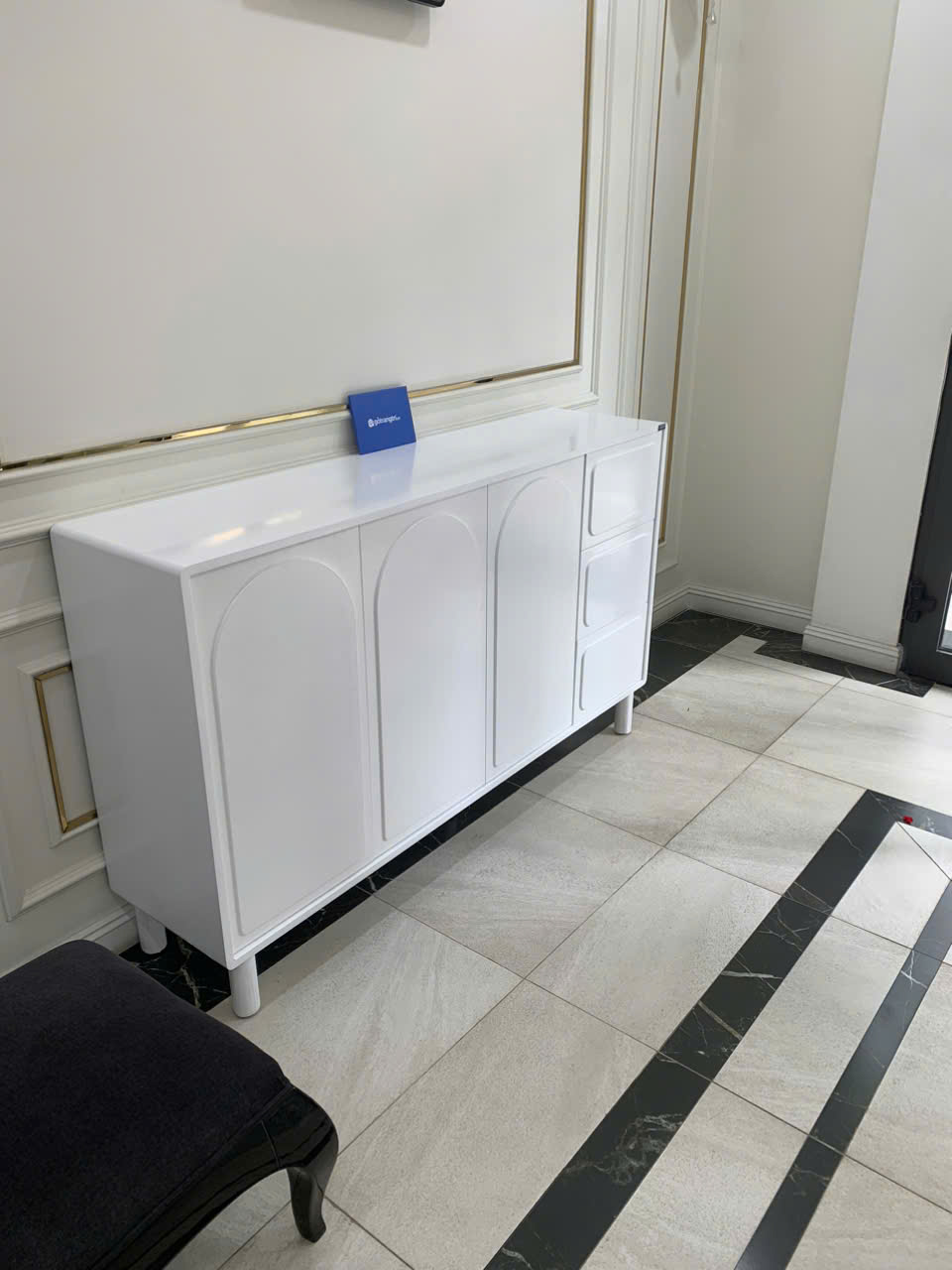 Mặt cánh tủ được thiết kế thành hình vòm mềm mại và độc đáo, tạo điểm nhấn ấn tượng và tạo ra một không gian trưng bày độc đáo cho đôi giày của bạn. Điều này không chỉ làm cho sản phẩm trở nên độc đáo mà còn tạo ra một không gian trang trí đầy nghệ thuật.