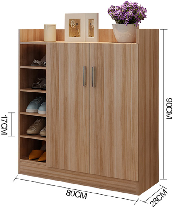 Hướng dẫn dùng: Tủ giày khoang cánh mở chia 4 tầng đợt gỗ, kết hợp 5 hộc thoáng.