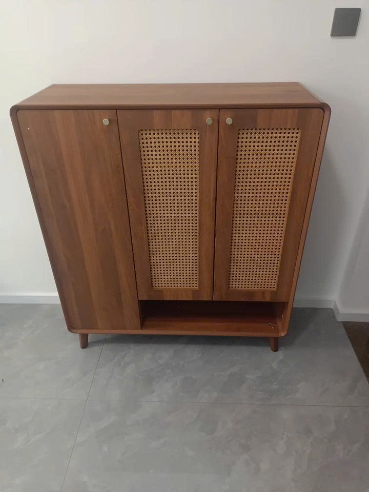 Tủ giày nan mây gỗ màu óc chó GHS-5292 là sản phẩm tuyệt vời để tạo điểm nhấn cho không gian sống của bạn. Với chất liệu gỗ sồi kết hợp veneer sồi tự nhiên cùng cánh kết hợp nan mây, tủ giày này mang đến sự sang trọng và hiện đại cho phòng khách, phòng ngủ hoặc hành lang. Kích thước vừa vặn của tủ giúp tối ưu không gian lưu trữ mà không làm mất đi vẻ đẹp tổng thể của căn phòng.