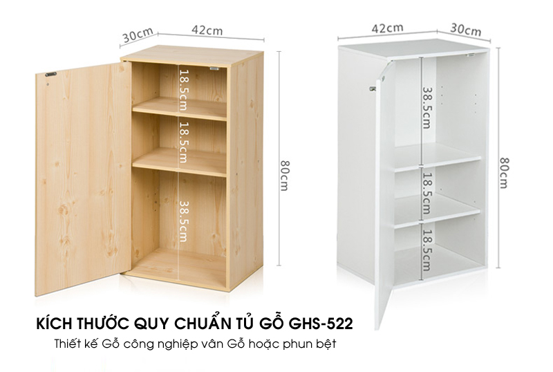 Hướng dẫn dùng: Tủ gỗ 01 cánh mở bên trong chia thành 3 khoang chia đợt gỗ để giầy, để đồ dùng vật dụng cá nhân…